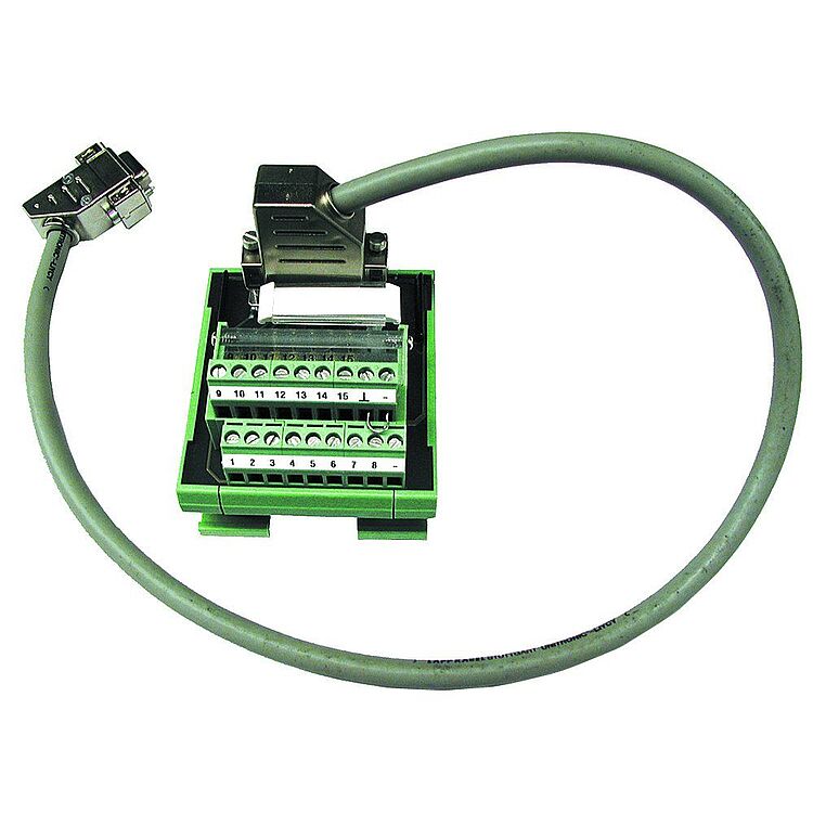 Parker bietet verschiedene Schnittstellenmodule zur Montage auf Hutschiene und Zubehör, die einen einfachen Zugang zu den E/A Signalen auf dem D-Stecker ermöglichen. Die Klemmenmodule der EAM Baureihe sind mit LED Anzeige-Option und verschiedenen vorverdrahteten Kabeln für die Servoantriebe der Compax3 Baureihe lieferbar.