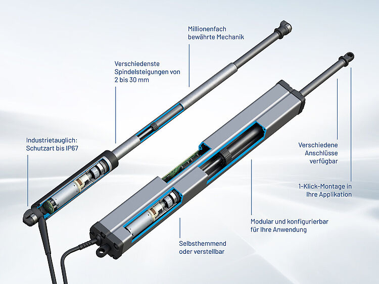 Mit Industrial POWERISE® sind den Möglichkeiten Ihrer Produkte praktisch keine Grenzen gesetzt. Lassen Sie Ihre Kunden Hochwertigkeit und Qualität in jeder Bewegung spüren – ob es um kurze, millimetergenaue Wege oder kraftvolles, elektrisches Heben und Senken, Öffnen, Schließen und Halten schwerer Elemente geht.